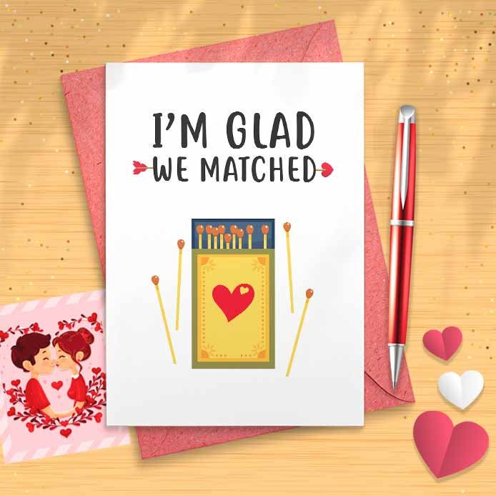 Glad We Matched Card - Funny Dating App Romantic Card, Cute Love Card for Boyfriend Girlfriend, Valentine's Day Anniversary [00178]