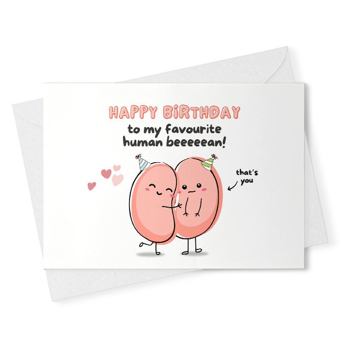 Funny Vegan Birthday Card for Husband, Wife, Girlfriend, Boyfriend - Cute Human Bean Design [02465]