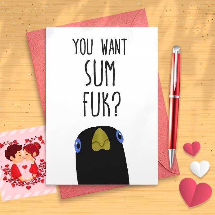 You Want Sum Fuk? Funny Bird Card, Raunchy Valentine's Day Card for Him, Naughty Valentine Gift for Boyfriend or Husband [02081]
