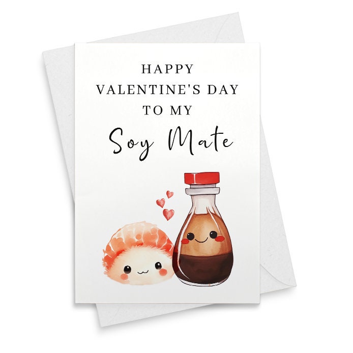 Cute Sushi Valentine's Card - Funny I Love You Card for Husband or Boyfriend - Soy Mate Soul Mate Gift for Him [01926]