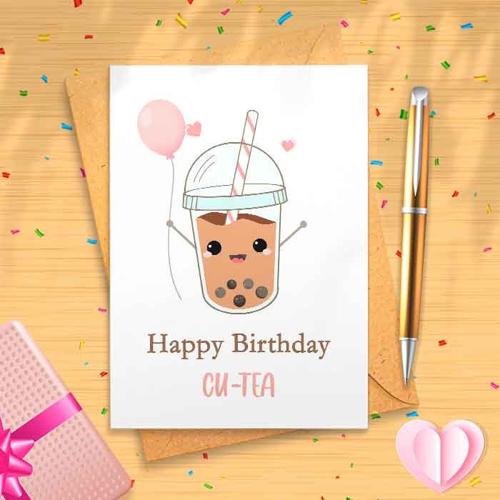 Cute Bubble Tea Birthday Card - Funny Card for Friend, Cute Card for Him or Her, Handmade Birthday Gift, Card for Boyfriend [00265]