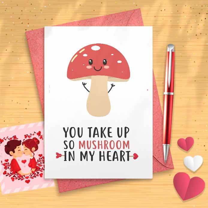 Funny Anniversary Card, Valentine's Day Pun - You Take Up So Mushroom In My Heart, Cute Love Card, Gift for Him or Her [00519]