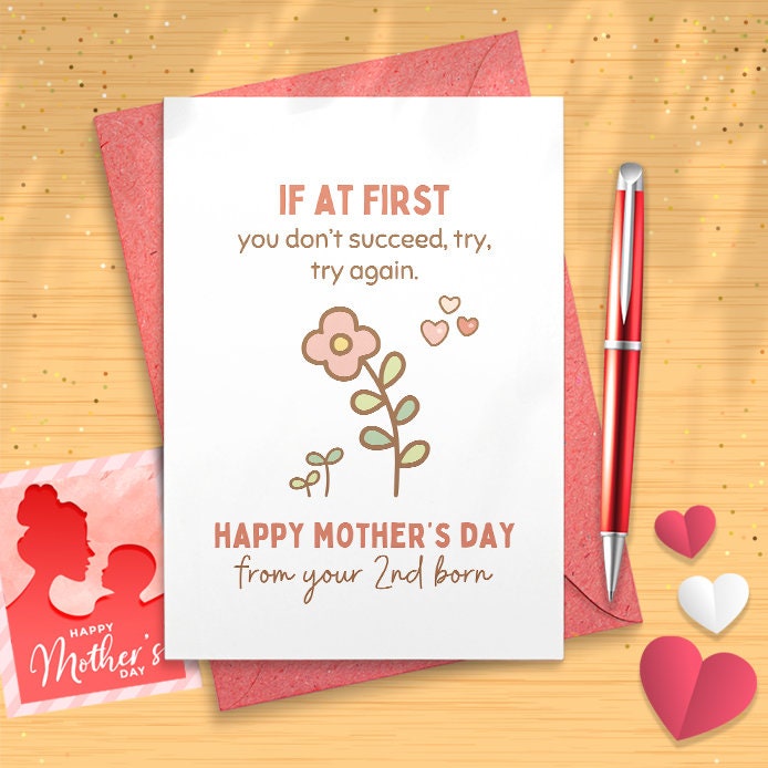 Funny Second Born Mother's Day Card, Snarky Gift from Middle Child, Witty Mom Card for Mother's Day, Humorous Mom Gift [02670]