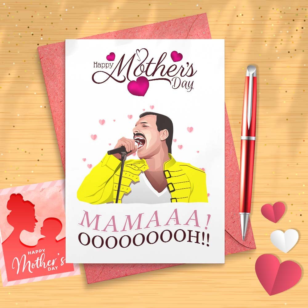 Funny Mothers Day Card - Mama Ooooh Freddie - Queen - Mama Mothers Day Card - Card for Music Lovers [00329]