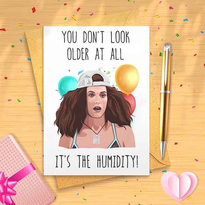 Funny Birthday Card - 'It's The Humidity' Birthday Humor, Sitcom Theme, Gift for Her, Best Friends, Over The Hill Celebration [00324]