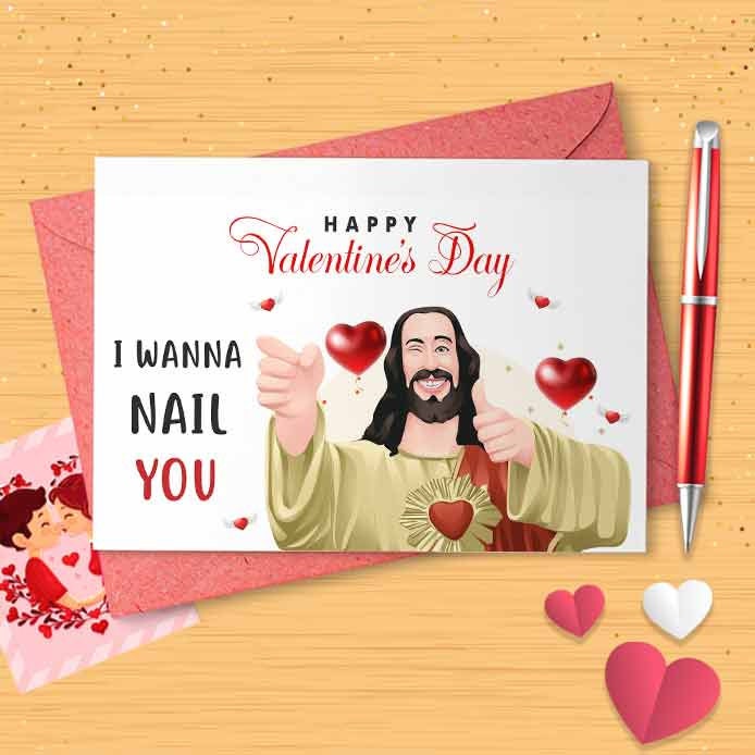 Funny 'I Wanna Nail You' Valentines Card - Romantic Card, Cute Love Card, Funny Valentines Day, Greeting Card, Love Funny Jesus [00389]