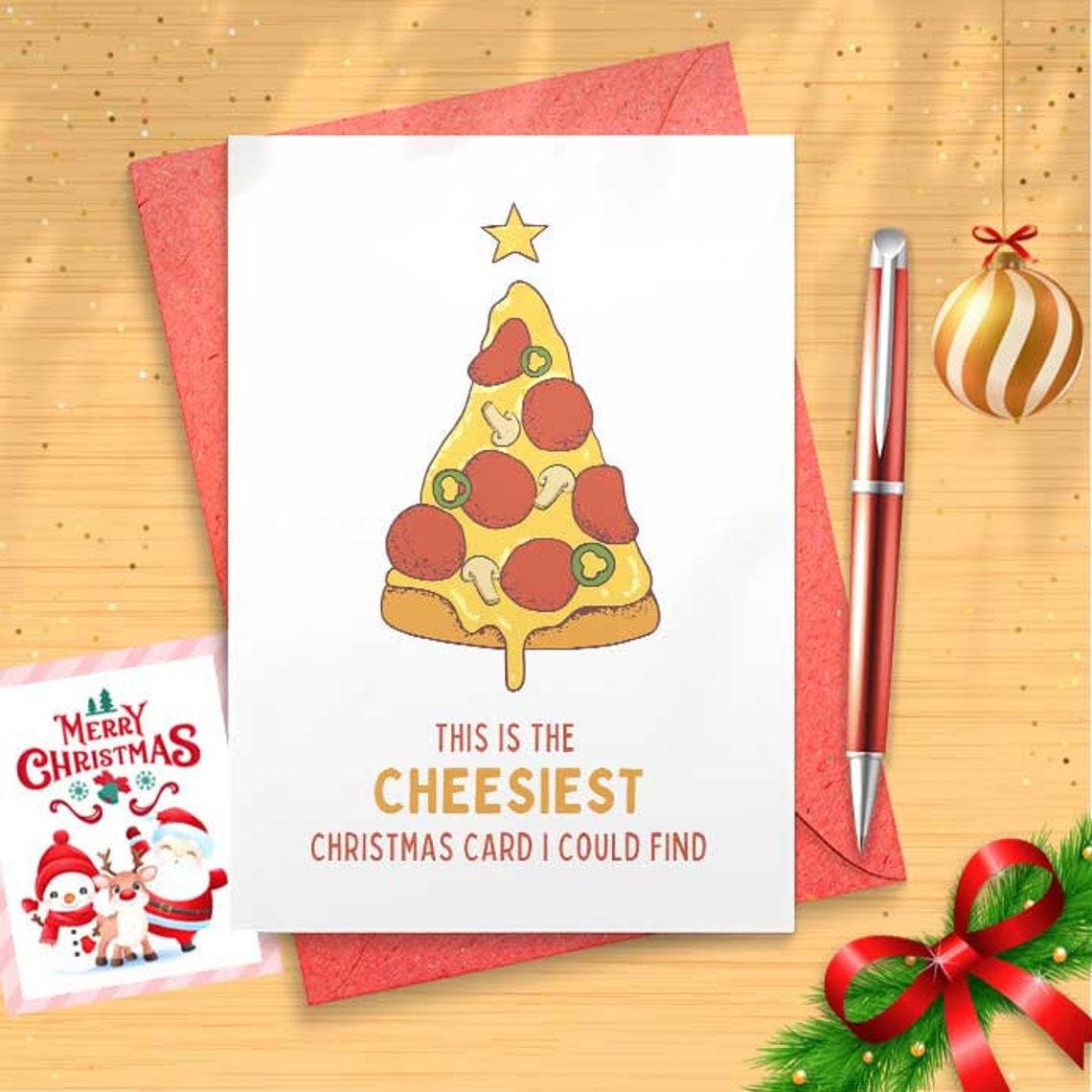 Christmas Card / Cheesiest Christmas Card / funny card for Christmas with pizza as a gift for friend or brother with funny saying [CR]