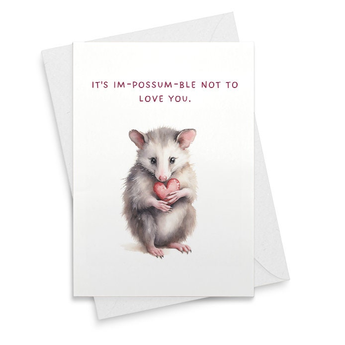 Funny Valentine's Day Card | Watercolor Possum Card | Cute Valentine's Gift for Her | Im-Possum-ble Love Card | Anniversary Card [02023]