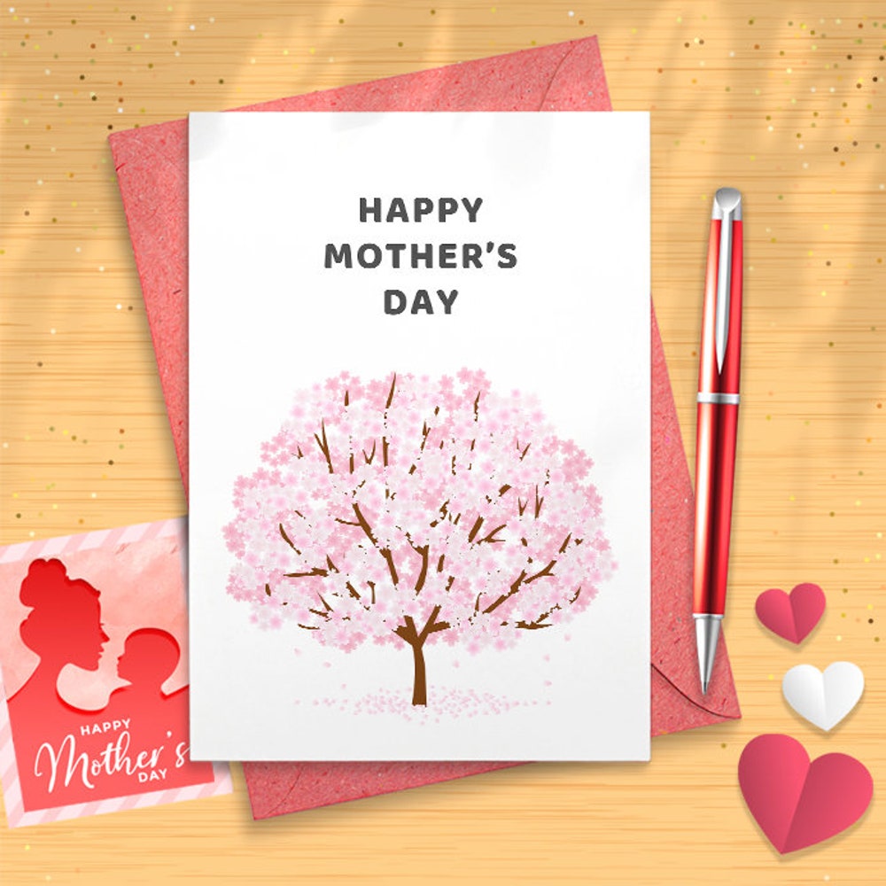 Cherry Blossom Mother's Day Card - Eco-Friendly Kraft Paper - Floral Greeting for Mom - Unique Gift for Mother's Day [02981]