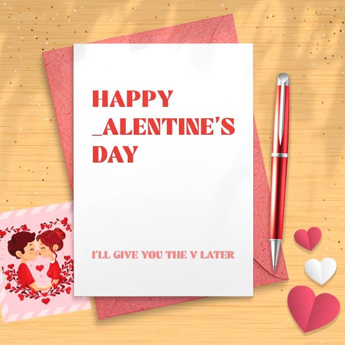 Funny Valentine's Day Card, Happy Valentine's Day I'll Give You The V Later, Card For Boyfriend, Card For Husband [03267]