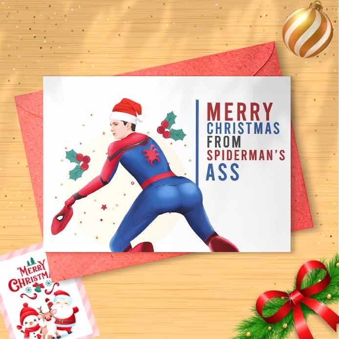 Funny Spidey's Ass Christmas Card - From Superhero's Ass, Greeting Card, Christmas Card [00439]