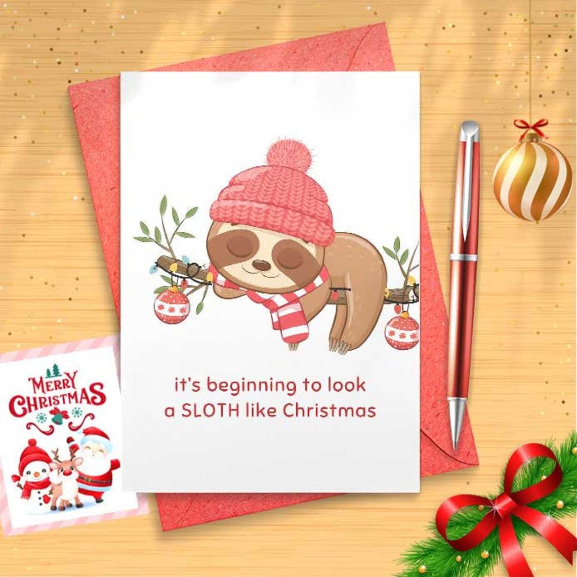 It's Beginning To Look A Sloth Like Xmas - Funny Christmas Card Pun | Cute Festive Punny Holiday Card | Fun Xmas Animal Sloth Pun [CR]