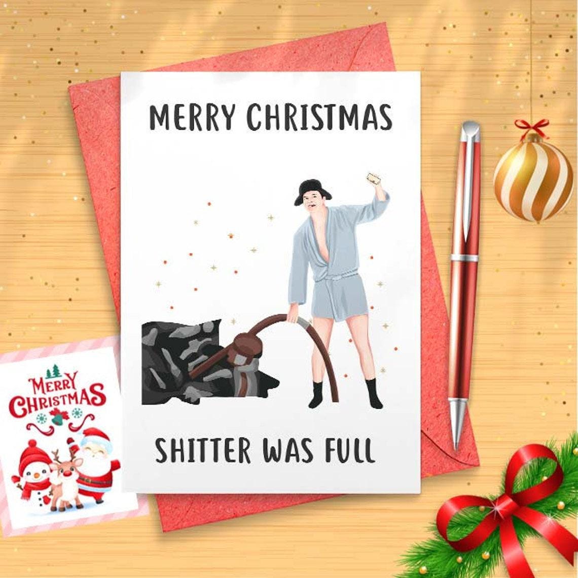 Funny 'Shitter Was Full' Christmas Card, Holidays Greeting Card, Funny Christmas Humor Gift, Santa Claus, Christmas Greetings [CR]