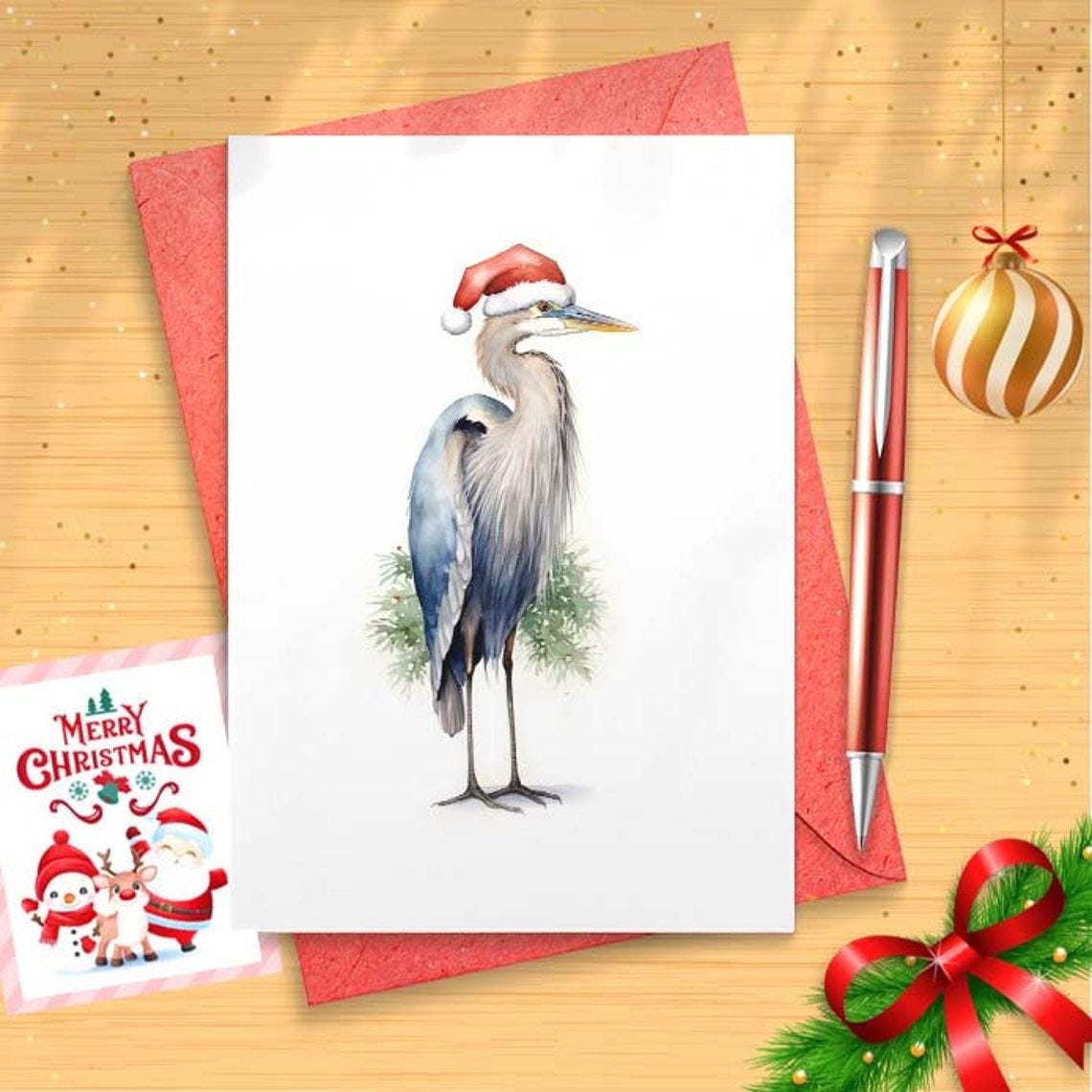 Great Blue Heron Christmas Cards, Heron Holiday Cards, Blue Heron Christmas Cards, Tropical Christmas Cards, Tropical Christmas [CR]