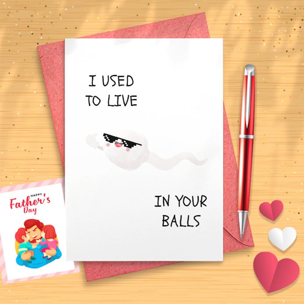 Funny Fathers Day Card For Dad | I Used To Live In Your Balls | Father's Day Birthday Fastest Swimmer First Fathers Day 1st Father [03136]