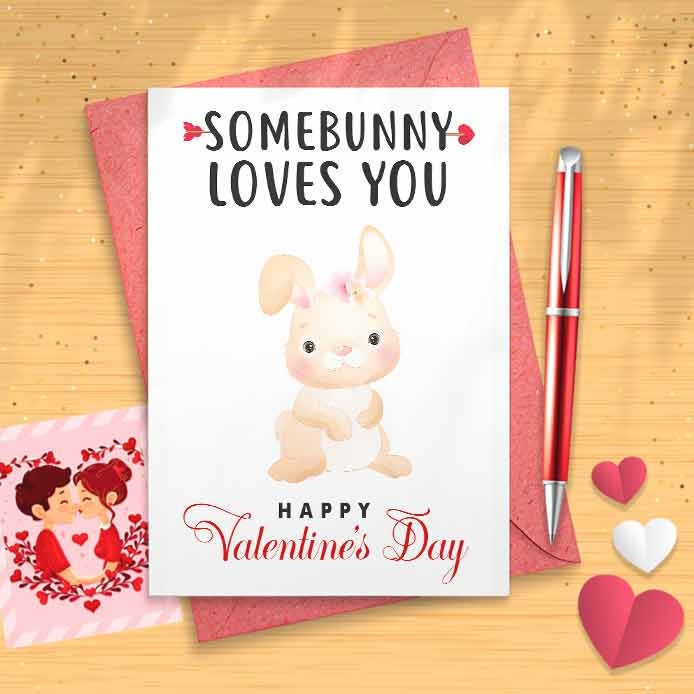 Cute Bunny Valentine / Galentine Day Card - Dog Lover, Romantic Card, Cute Love Card, Funny Valentines Day, Greeting Card, Love [00584]