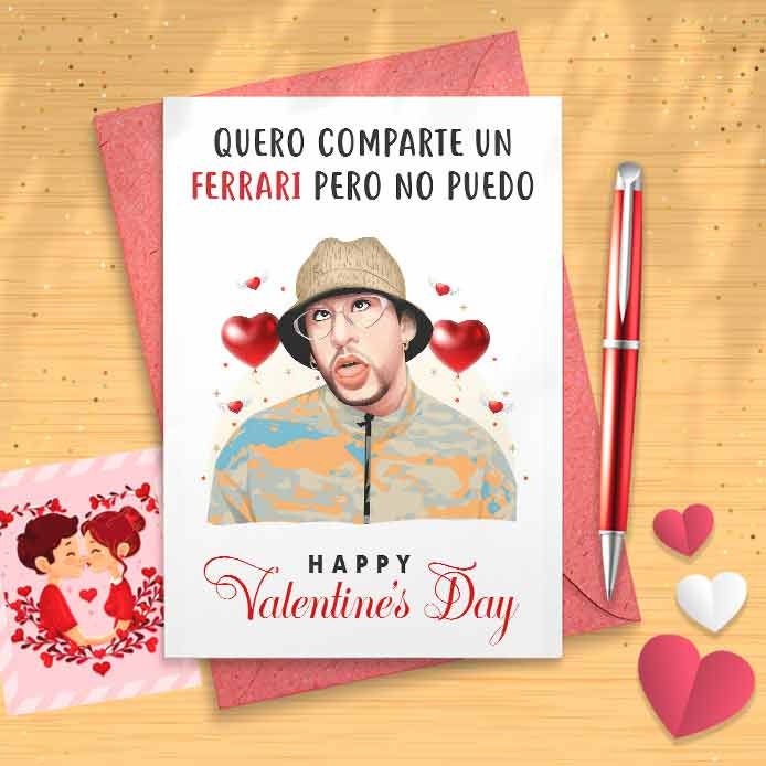 Funny Valentine / Galentine Card - Quiero Comprarte Un Ferrari Pero No Puedo, Maldita Pobreza [00387]