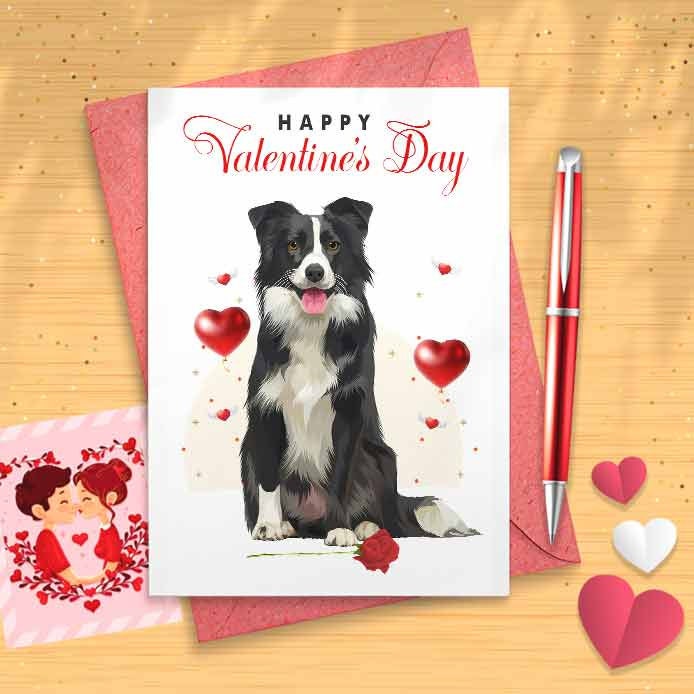 Cute Border Collie Valentine / Galentine Card - Card For Her, Card For Gf, For Wife, Romantic Card, Cute Love, Funny Valentines Day [00626]