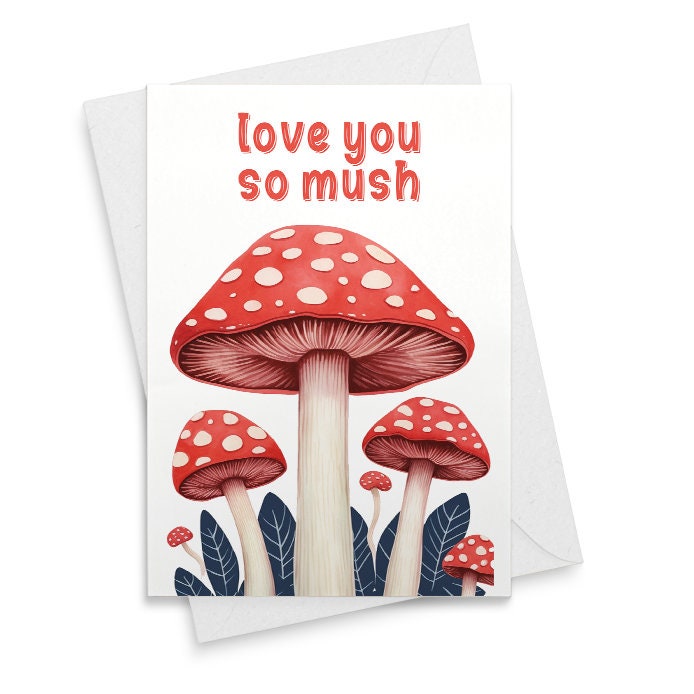 Mushroom valentines day card love you so mush cute mushroom card valentines day card for her [01935]