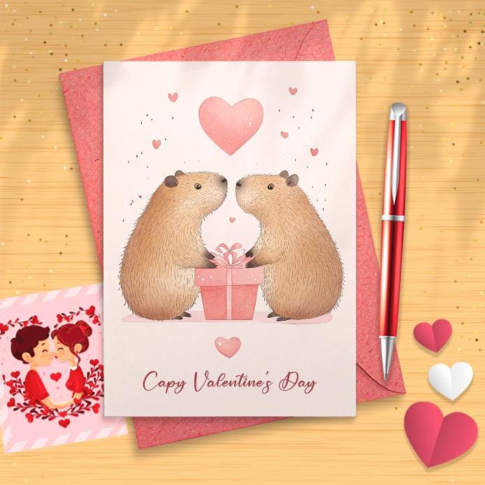 Capy Valentine's Day Card - Happy Capybara Cards - Capybara Lover Gift Token - Animals Cute Pun Funny Galentines Gift for Her [03275]