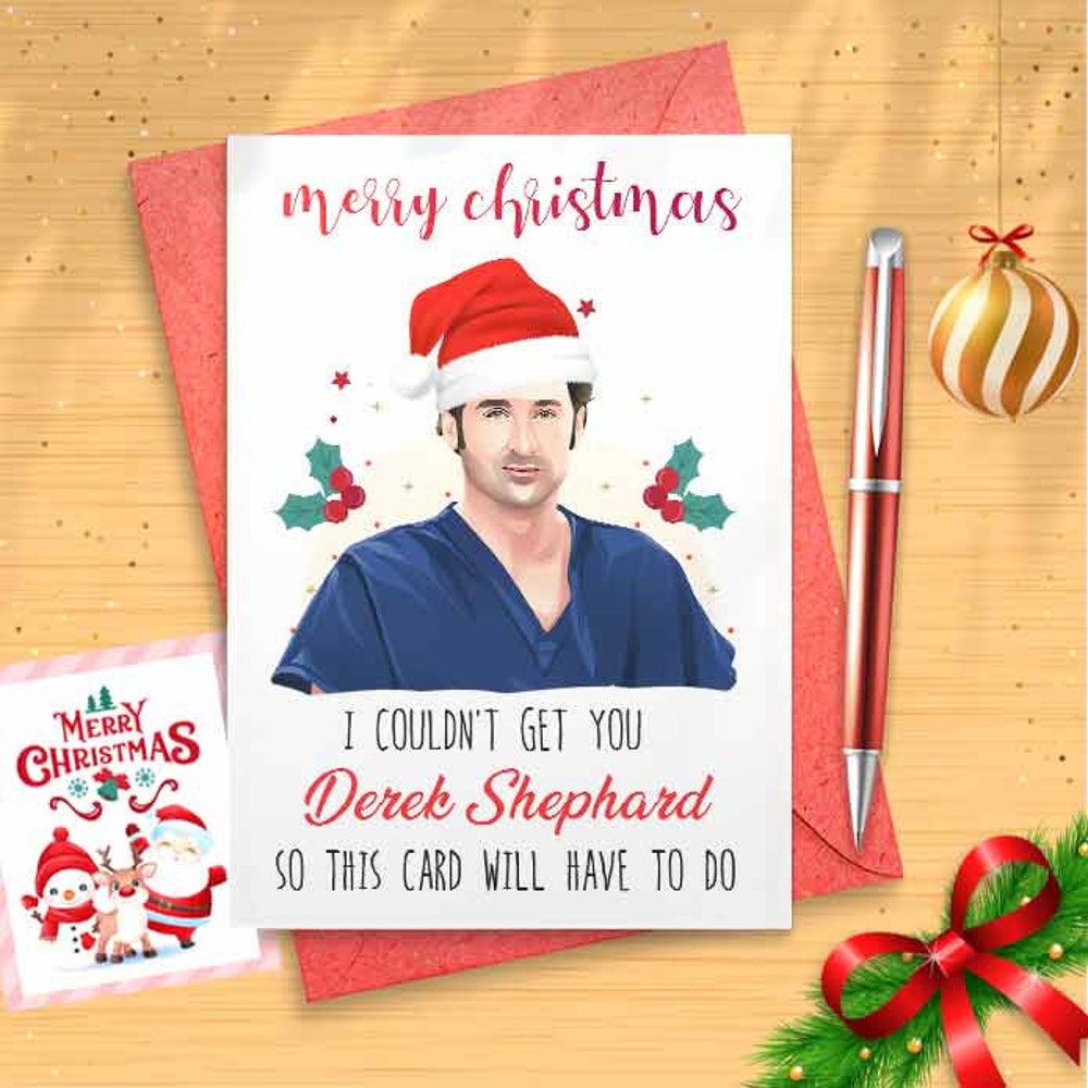 Funny Derek Christmas Card - Funny Holidays Card, Holiday Card, Merry Christmas, Christmas Humor, Seattle Grace, Celebrity Crush [00559]