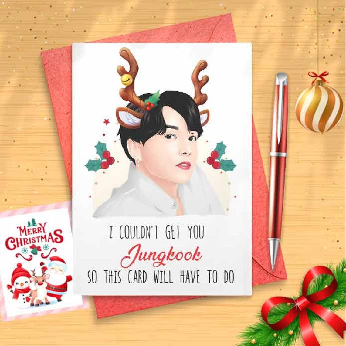 Jungkook Christmas Card Customizable - K Pop, Korean Band, Personalizable, Funny Christmas Card, Christmas Humor, Christmas [CR]