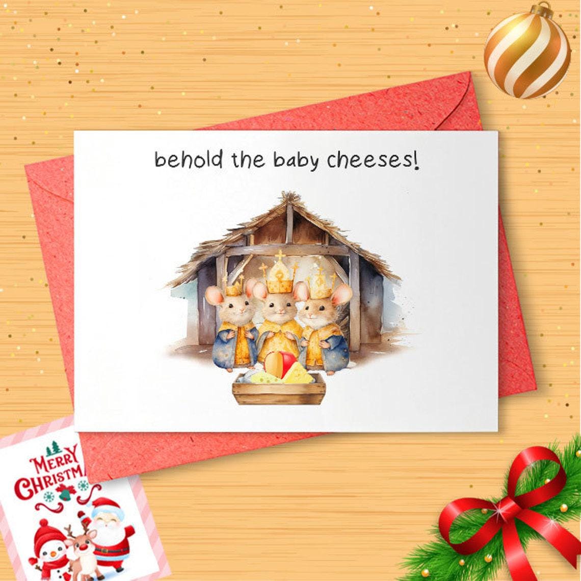 Funny Christmas Card with Baby Cheeses - Funny Xmas Card - Merry Christmas Card Funny Christmas Gift - Holiday Card - Humor - Mice [CR]