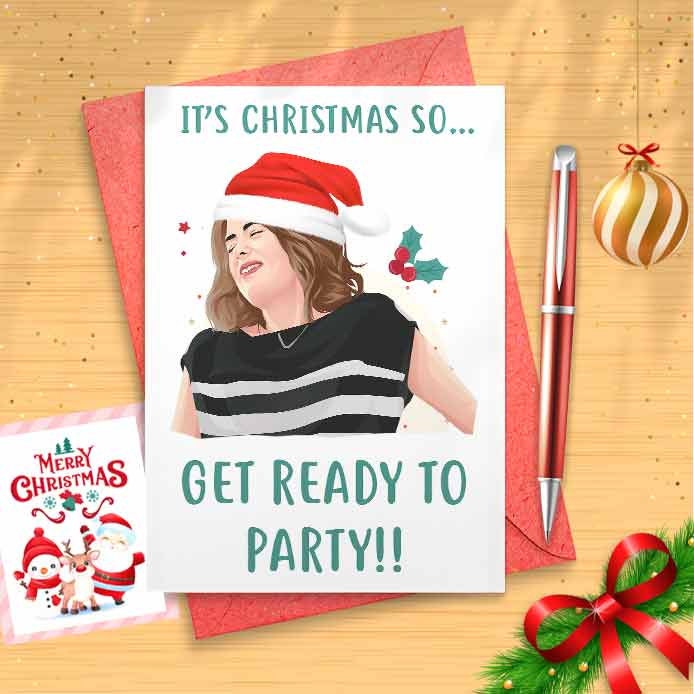 Funny Kristen 'Get Ready to Party!' Christmas Card - Movie Card, [00830]