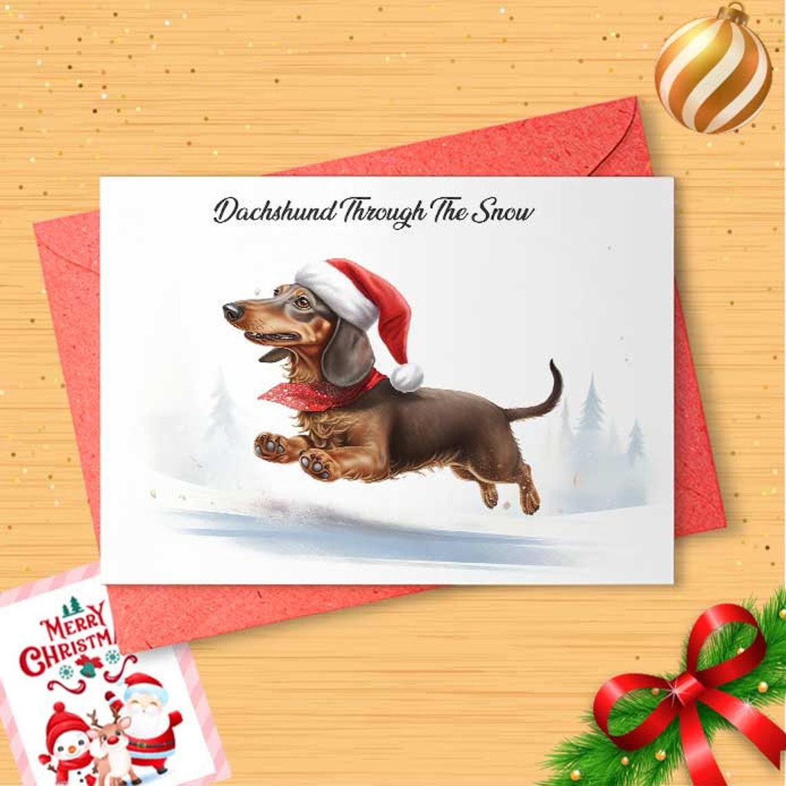 Dachshund Through The Snow Christmas Card - Funny Dog Card - Dachshund Card - Sausage Dog Card [CR]