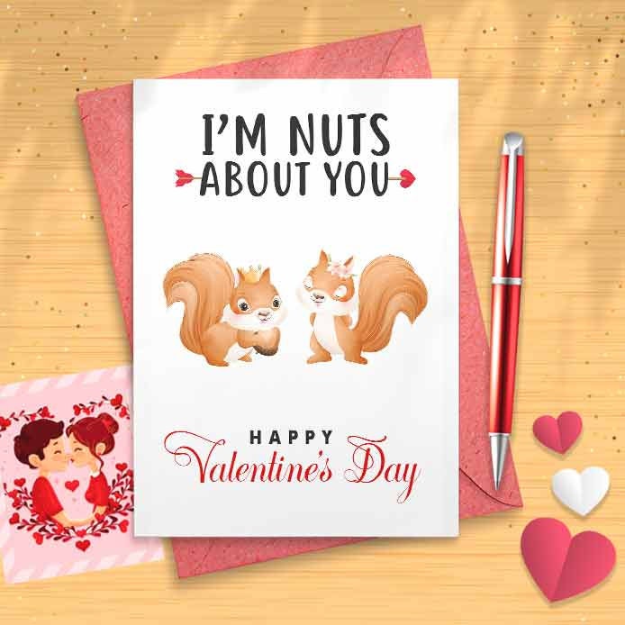 Funny Squirrel Pun Valentines Card - Romantic Card, Cute Love Card, Funny Valentines Day, Greeting Card, Love Greeting, Funny Love [00583]