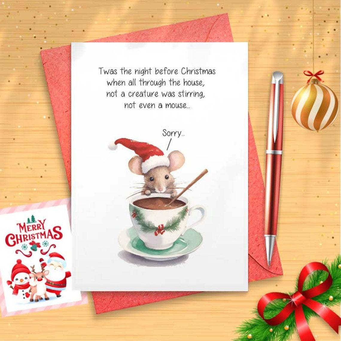 Twas the night before Christmas card, Funny mouse greeting card, Cute animal Christmas card [CR]