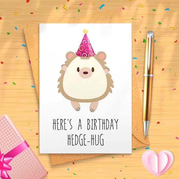 Hedgehog Card Birthday Card - Birthday Cards, Funny Cards, Hedgehug Card, Cute Animal Cards, Celebration Card, Animal Card,