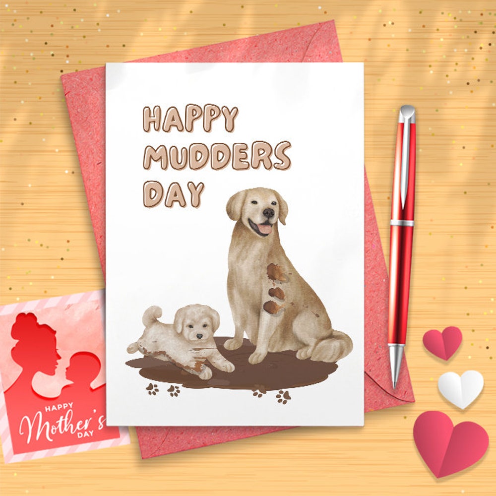 Mud Dog Mother's Day Card Funny - Happy Mother's Day Cards From The Dog - Golden Retriever Dog Mom Gifts [02554]