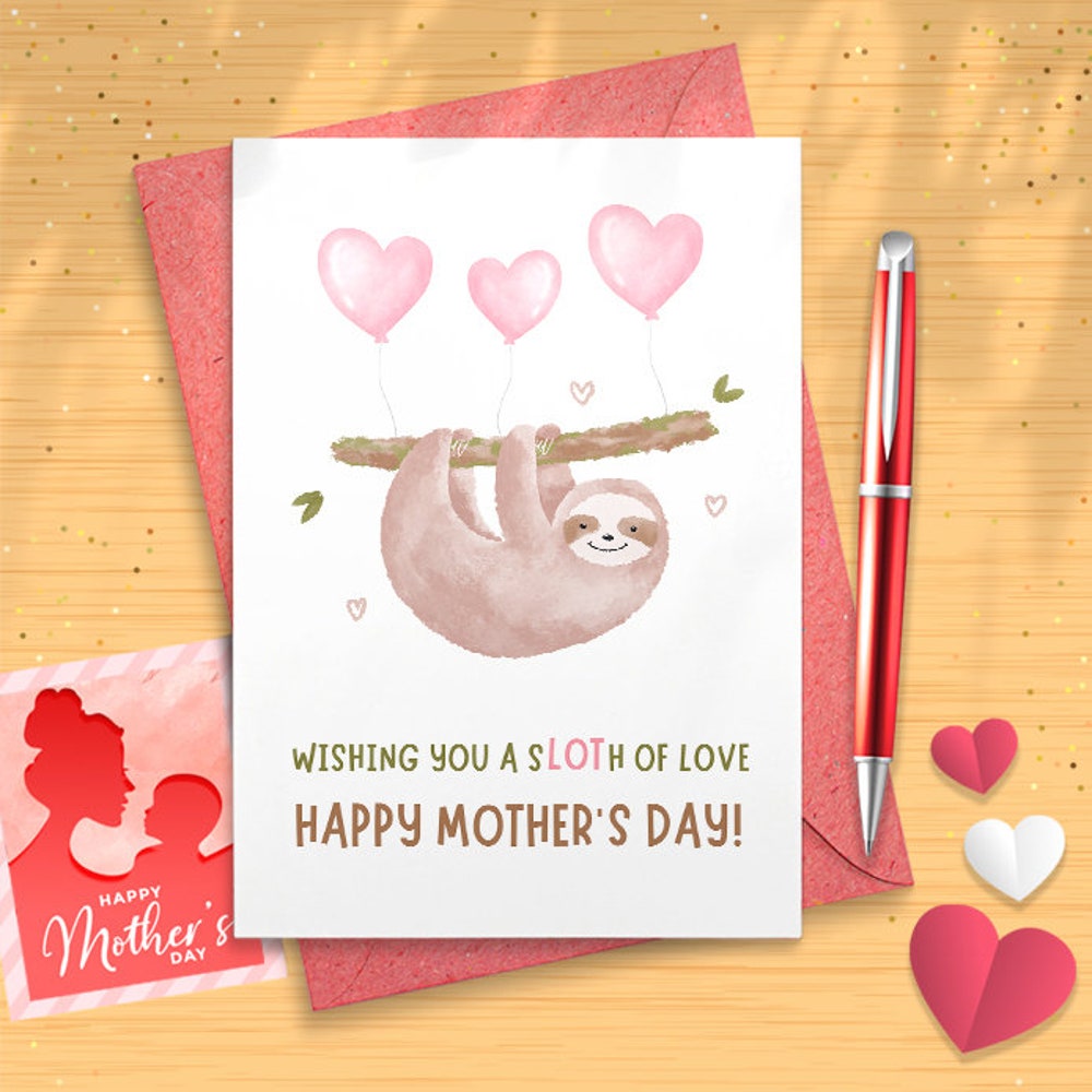 Funny Sloth Mother's Day Card from Kids, Cute Mother's Day Card for Mom, Humorous Card for Daughter or Son, Gifts for Mother's Day [02912]