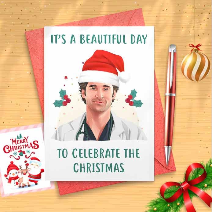 Funny Derek Christmas Card - Funny Holidays Card, Holiday Card, Merry Christmas, Humor, Seattle Grace, Celebrity Crush [00916]