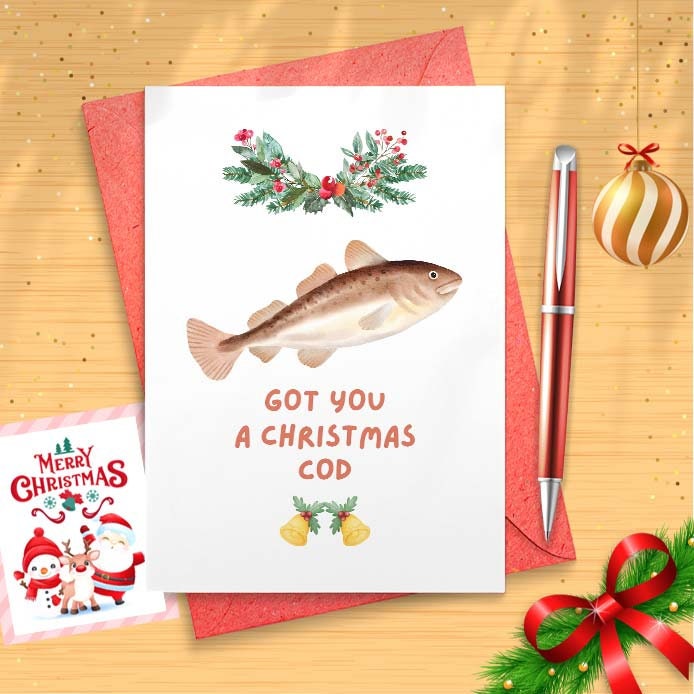 Got You A Christmas Cod - Funny Pun Christmas Card - Cod Christmas Card - Punny Holiday Cards - Card for Fishes [01563]