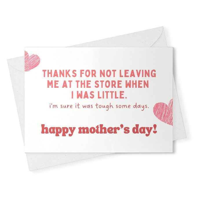 Funny, Mothers Day Card, Thanks for not, leaving me, Sarcastic, Mothers Day, Greeting Card, From Daughter, For Her [02128]