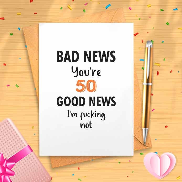 Bad News You're 50 - Funny 50th Birthday Card [00659]
