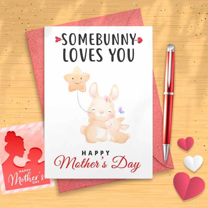 Cute Bunny Mother's Day Card - Animal Lover, Mother's Day, Personalised Card, Happy Mothers Card, Card For Mom Grandma, First [00976]