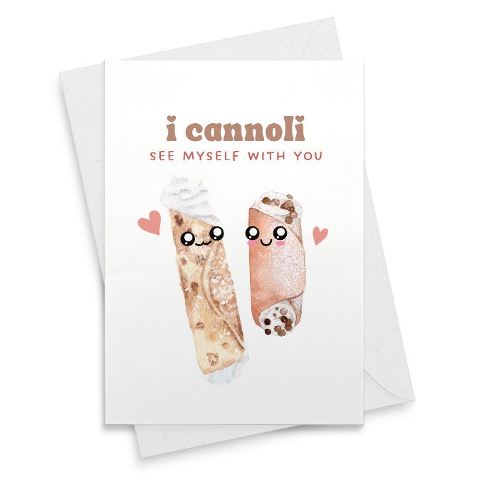 Cannoli See Myself With You - Cute Valentine's Card - Food Pun Love Card - Illustrated Dessert Card - Anniversary Greeting [01796]
