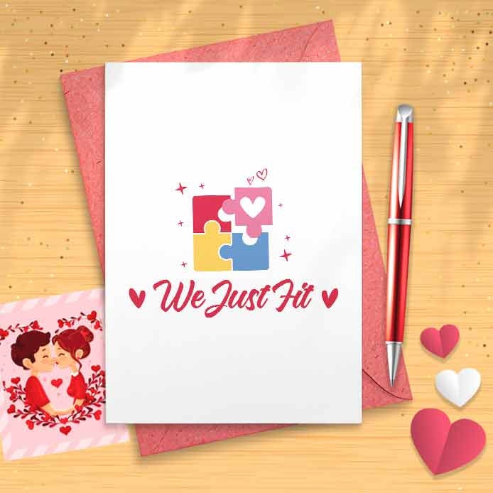 Cute Valentine's Card - We Just Fit, Wife, Husband, Boyfriend, Girlfriend, Anniversary Card [00818]