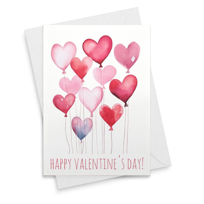 Valentine's Day Card Hanging Hearts Watercolor Stationary Hand-painted love note Folded Card with Envelopes [01903]
