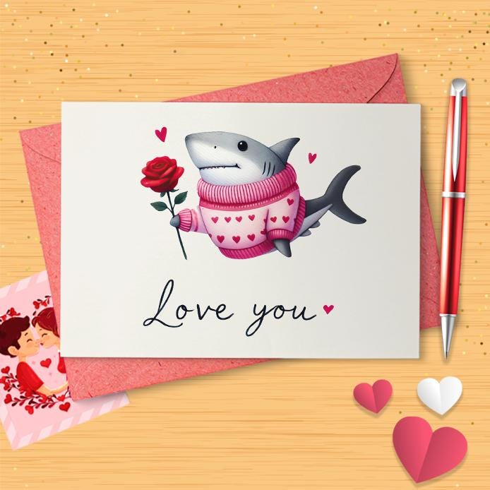 Shark Love Card - Funny Valentine's Day Card for Him - Humorous Birthday Greeting - Quirky Anniversary Card [03280]
