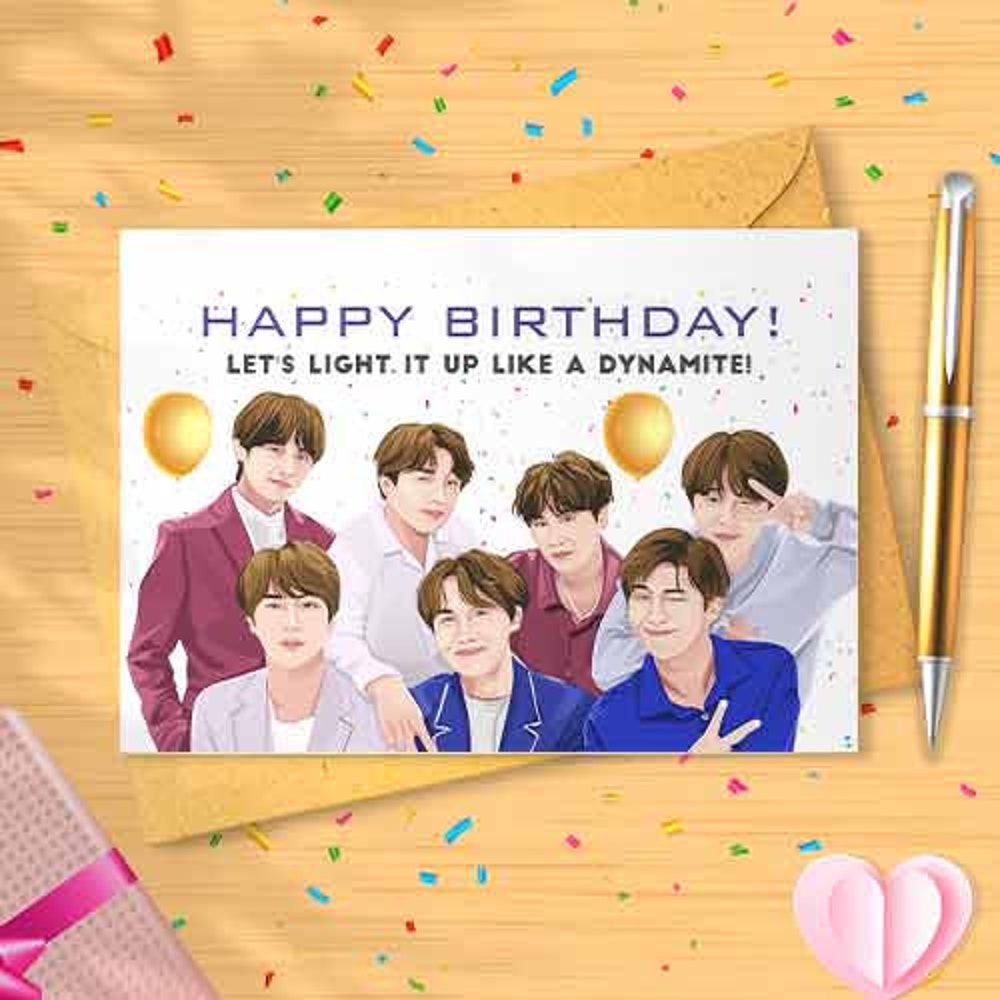 Let's Light It Up Like A Dynamite! - Birthday Card Customizable - K Pop, Korean Band, Personalizable, Funny Birthday Card, Birthday [00491]