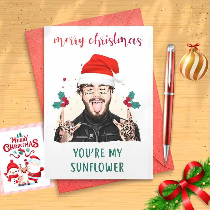 Funny Post Christmas Card - Sunflower, Hip Hop Rap Art Gift Merry Music Fans Funny Christmas Cards for Him Her Girlfriend Boyfriend [00653]