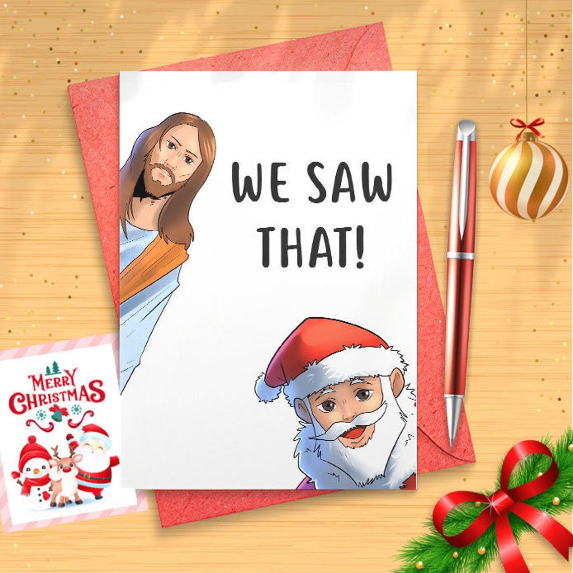 Funny Christmas Card for Friend - Funny Holiday Cards for Her - Sassy Christmas for Him - Happy Holidays - Santa I Saw That Jesus [CR]