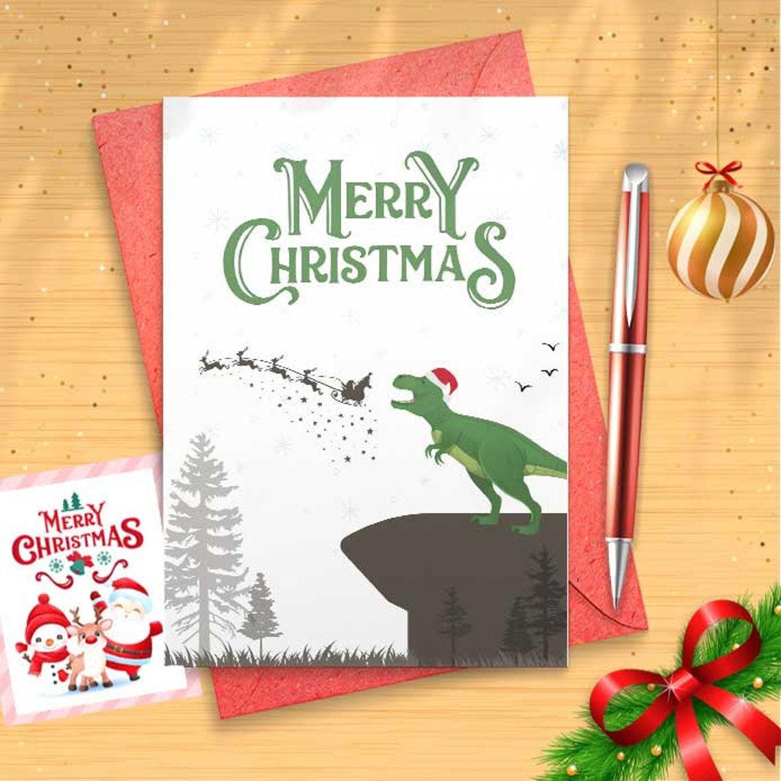 Jurassic Christmas Card, Bundle, Merry Christmas Card, Christmas Card, Funny Christmas Card, Holiday Card, Dinosaur Christmas Card [CR]