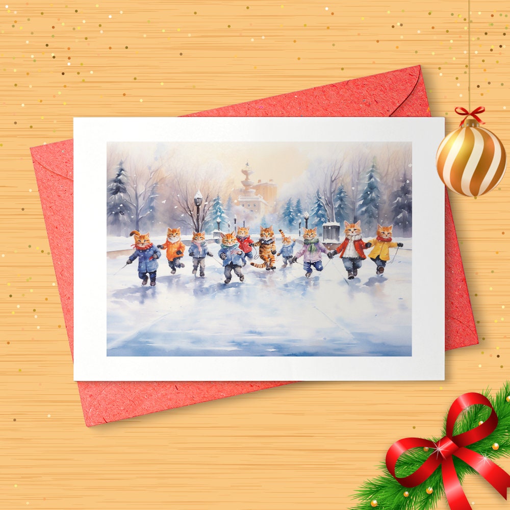 SKATING CATS Holiday Card Supporting Homeless Pets Set [01429]