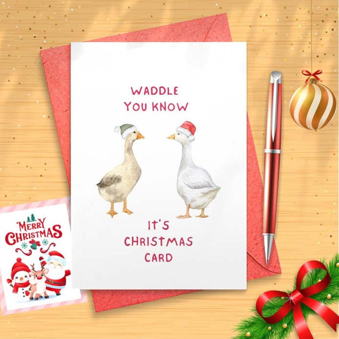 Duck Pun Holiday Card - Well Waddle You Know It's A Christmas - Fun Holiday Card For Friends and Family Made [CR]