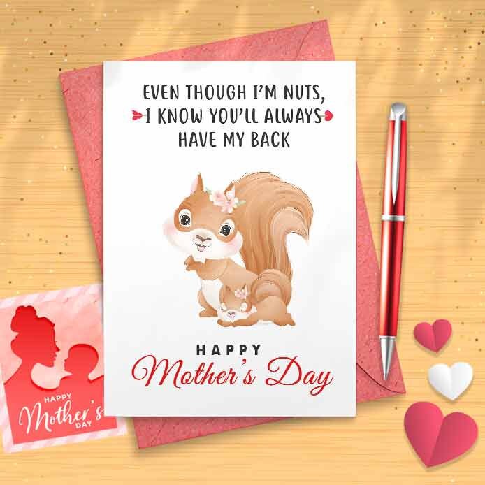 Funny Squirrel Pun Mother's Day Card - Mother's Day, Personalised Card, Happy Mothers Card, Mothers Day Card, Card For Mom Grandma, [00954]